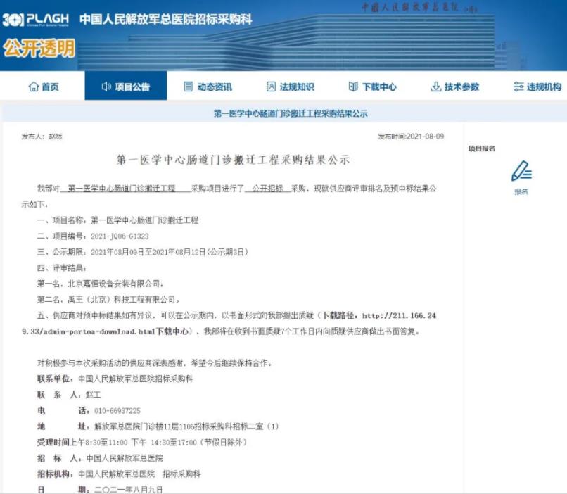 【嘉恒業(yè)績】恭喜北京嘉恒中標301中國人民解放軍總醫(yī)院第一醫(yī)學中心腸道門診搬遷工程-裝修裝飾工程