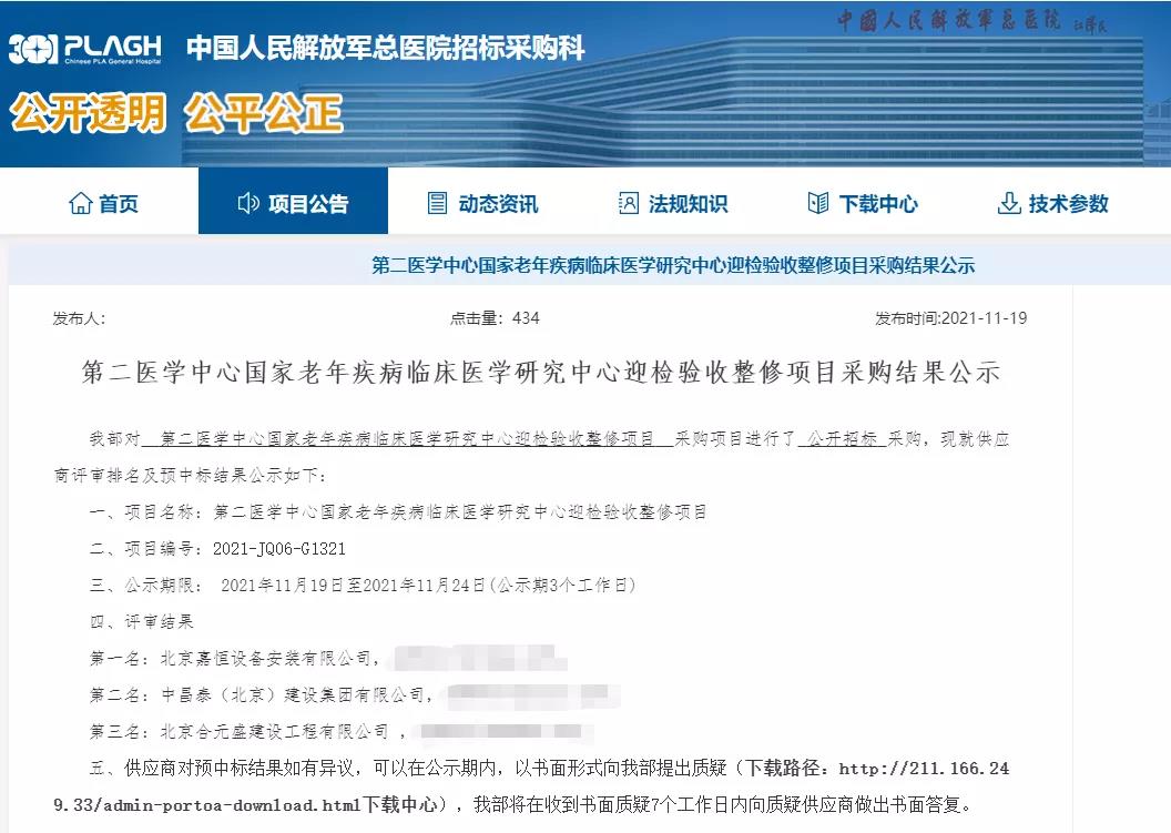 【嘉恒業(yè)績】恭喜北京嘉恒中標(biāo)301中國人民解放軍總醫(yī)院第二醫(yī)學(xué)中心國家老年疾病臨床醫(yī)學(xué)