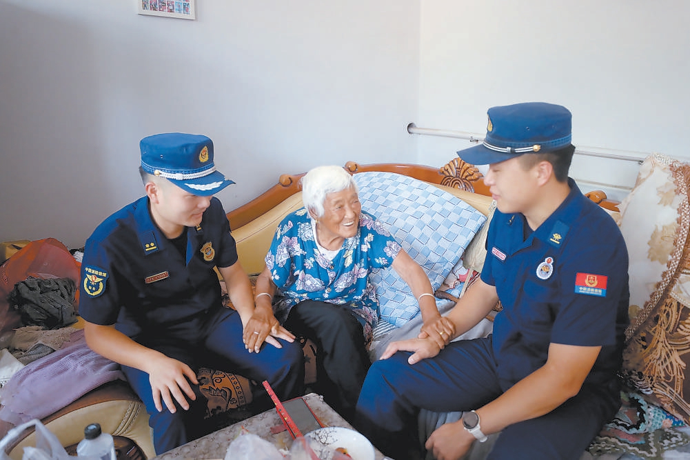 “奶奶,您還記得我們嗎?去年洪災(zāi),您下來(lái)拿藥,是我們把您抬上了烽火臺(tái)。您的身體怎么樣?”李大媽的婆婆今年87歲,老人一看到黃志川和張誠(chéng)鑫,就緊緊攥住他們的手舍不得松開,“我精神頭還不錯(cuò),孩子們放心。”
