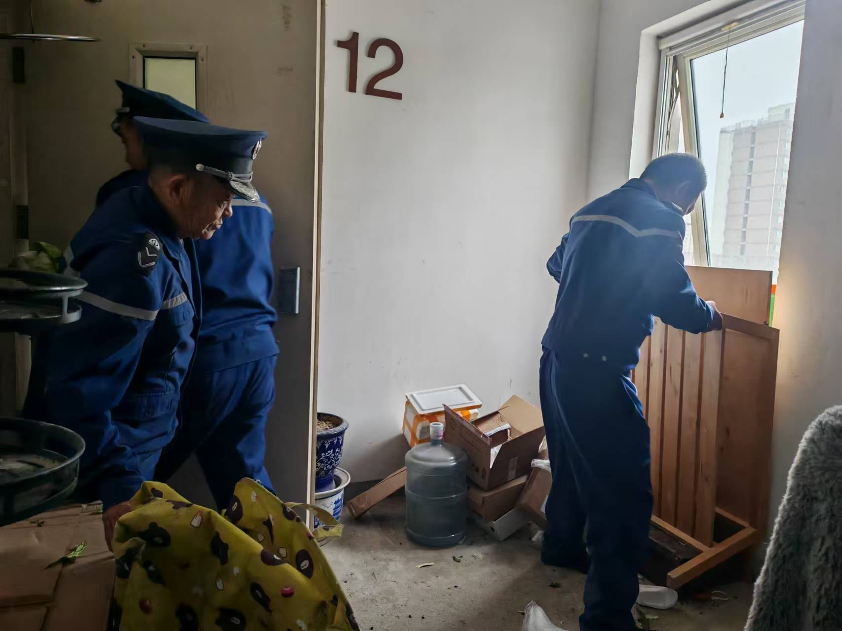 之后,記者又來到西城區(qū)槐柏樹街南里西區(qū),消防部門正聯(lián)合社區(qū)在5號樓10單元開展樓道堆物堆料的清理工作。